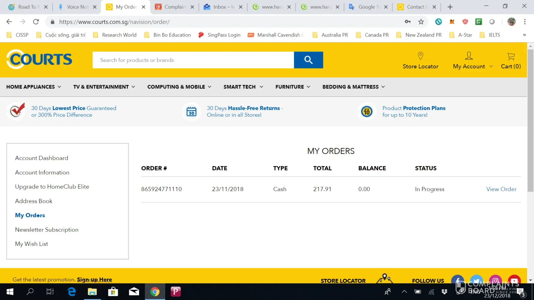 However, no one called me. Very disappointed, I contacted them via this link https://www.courts.com.sg/contact/ and asked them to cancel my order. After sending, I got a message that said they will get back to me in 3 working days. Again no news. Send another cancellation again. Again, no news.