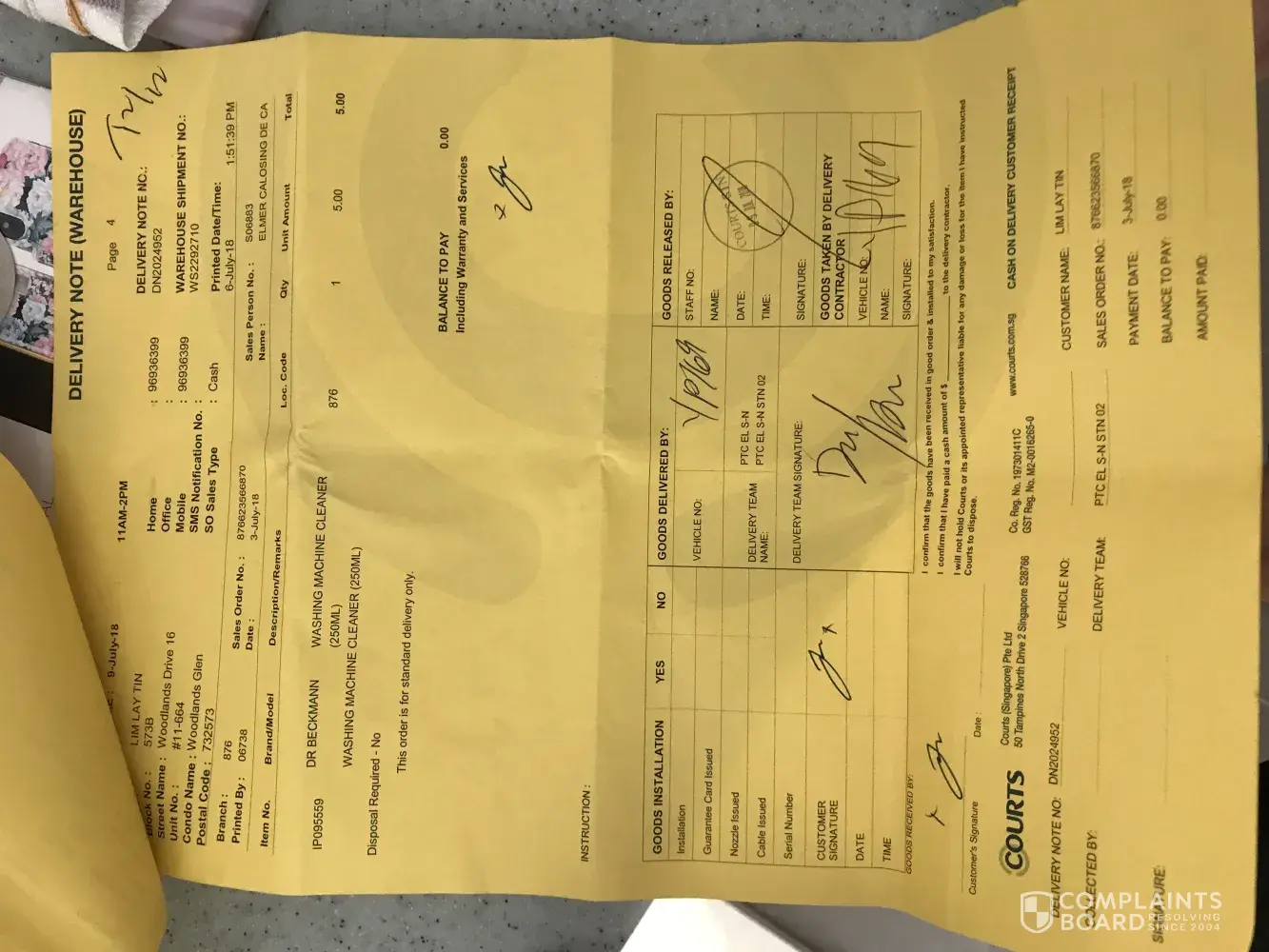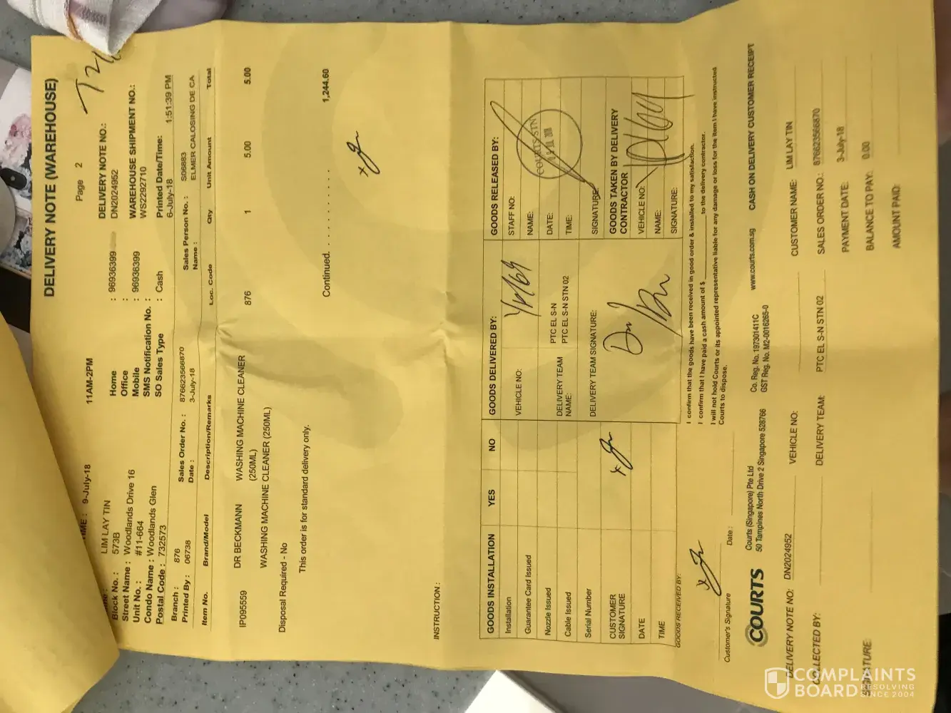Bought a fridge and washing machine from Court Somerset Singapore on the 7th Sep 2018. Delivery of all the purchase items are arranged on 13th Sep 2018 between 2pm-5pm. However received a call from the driver at 11am saying arriving at 12pm and was asked to get home ASAP otherwise the delivery has to be rearranged. Driver arrived around 12pm and ONLY fridge was delivered. We were having the impression that all items will be delivered together as there was not mentioning of separate deliveries.