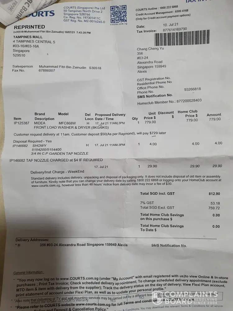 I have been a loyal supporter for buying electrial stuff from Courts and this year alone, i have spend over jun n july over $11, 000, i hv receipts to prove. To further my support, i hv recently purchased a washing machine this week online n was alarmed by the delivery guy Azmar 's hooligan attitude and didnt wanted to help put the dryer on top of the new washer and was super rude and havin intimidating attitude to my wife n told my wife if not happy juz refund. Despite my wife called his supervisor, after his supervisor talk to him, he stil refuse n took the washing machine away.
