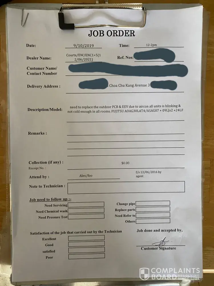 A terrible experience and unsatisfactory customer serviced from courts Singapore.