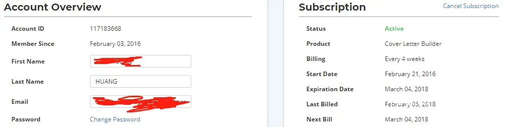 Im thoroughly upset. I paid to have the cover letter done back in January, and its August now! I've been charged 24.95 for 7 months! i could have sworn that I canceled the subscription as soon as I was done using it because I don't need a life long cover letter subscription. When I called, the most they apparently could do is give me half a months worth back... 12 freaking dollars... I had 50 to my name this week and they took half of it. Not to mention the hundreds since January! He said if I have the history from the cancellation that he could help more... But history is not kept that far back. I'm actually so upset right now. This company robs money from people, and I have to history of them in my email or anything, they just sneakily take your money. NOT OKAY!