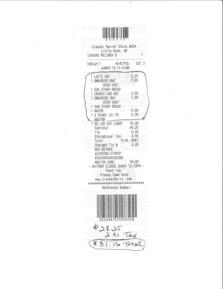 Online food order at cracker barrel