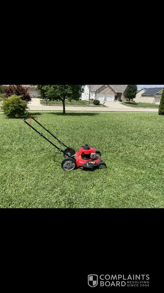 Desired outcome: I want the mower picked up, the failure determined and fixed and then returned at their expense.