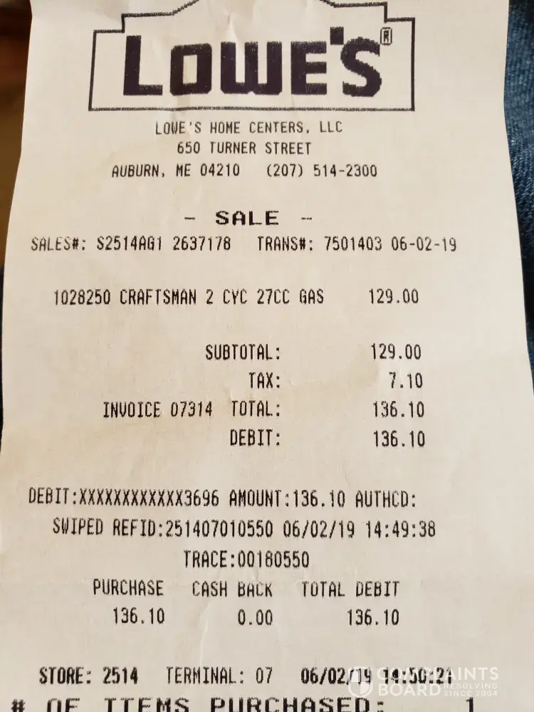 Tried returning a chainsaw that did not work, for an 80yr old women. Was giving a total run around because i did not have her receipt. The manager in the tool department was arrogant and did not seem to give a s t. then he brings the manager from appliances over to talk with me. long story short he told me the saw was stamp dated 05. ok why did the manager of the tool department know and tell me that. this character was also very rude, so i became rude back. You get what you sow a holes. Well now because of this bad experience there i will no longer be buying my tools from crapsman i spelled that on purpose that way. I will let everyone i know about this experience i had. I have alot of friends in the trades business, and will be blogging bad reviews about this for a long time. Your company there blows. very unhappy with your services and people that work for your company. sincerely a customer you have lost for good.