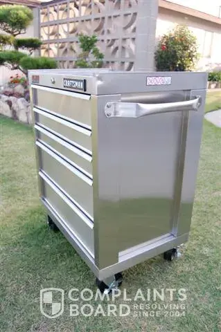 I received a Stainless Tool Box brand new from Sears on July 3, 2017. I sent an email about this issue the same day and have not heard back fron Sears. On the Craftsman website it says that they will respond in 24 hours. It's been almost 1 month with no response.