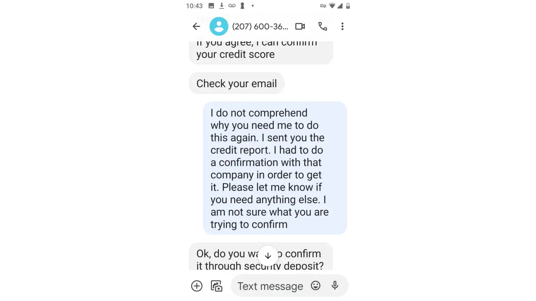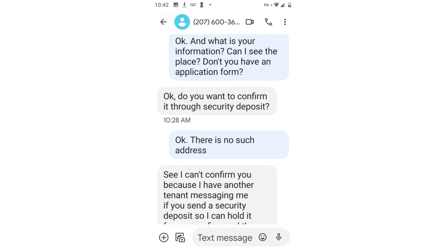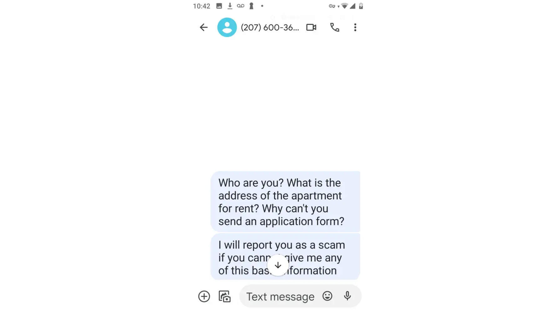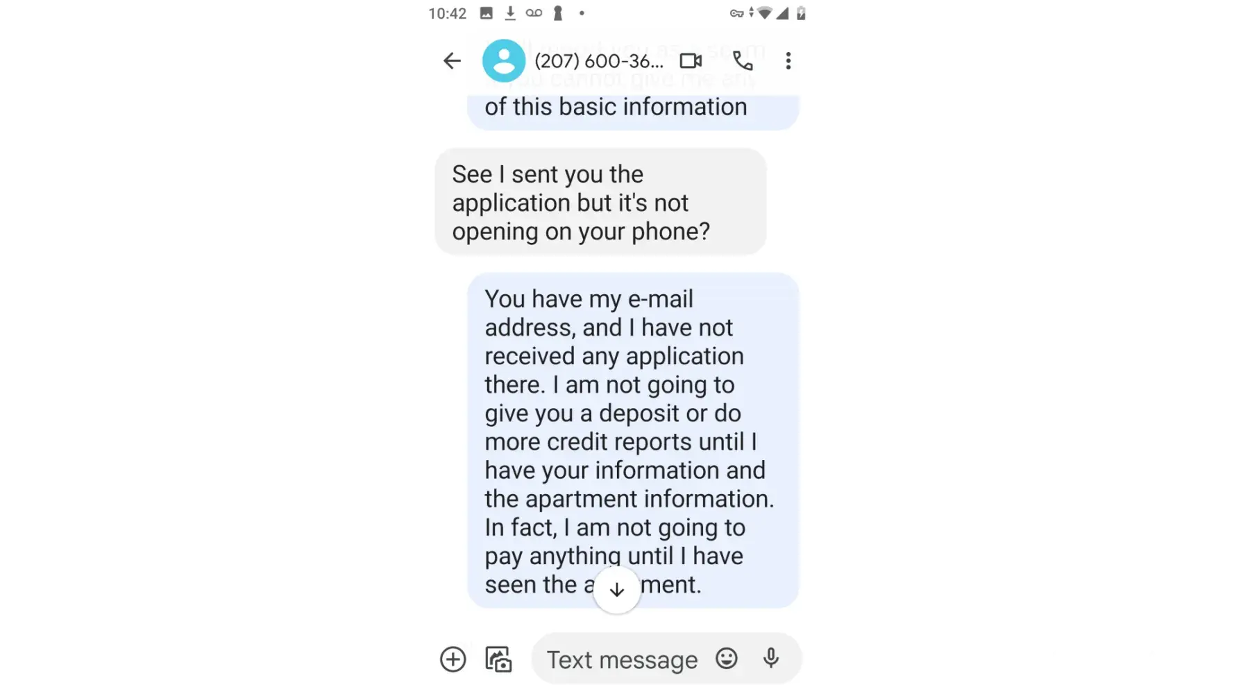 After sending the credit report, this person sent another link and said I had to fill out another credit report. At that point, I refused. Then, the peron asked for a deposit, which I also refused. I started to ask for the information of the party that was renting, and I got no answers. Finally, I informaed the person that I would be reporting them. And I stopped replying to their messages.