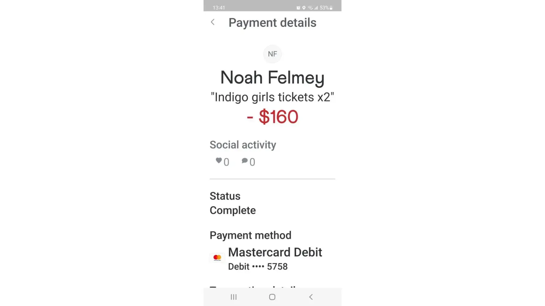 paid $160 for 2 indigo girls tix from Noah felmey [protected]@reply.craigslist.org