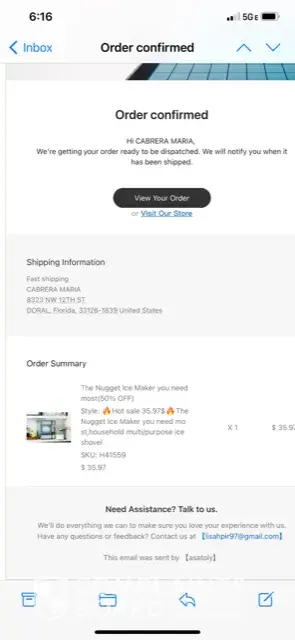 On July 23rd, 2021, I sent an e-mail to [protected]@gmail.com as the item I finally received was just an ice scooper. There was no ice maker.