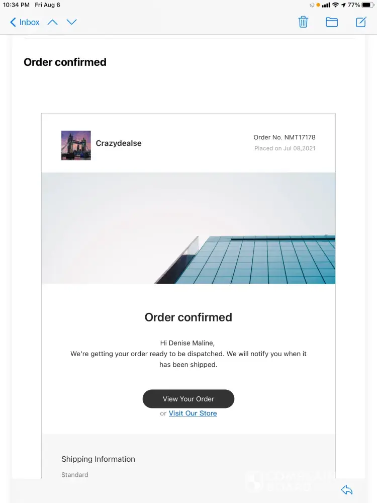 Here is the info: Website: crazydealse Order # NMT17178 Shipping #: UG085460172YP
