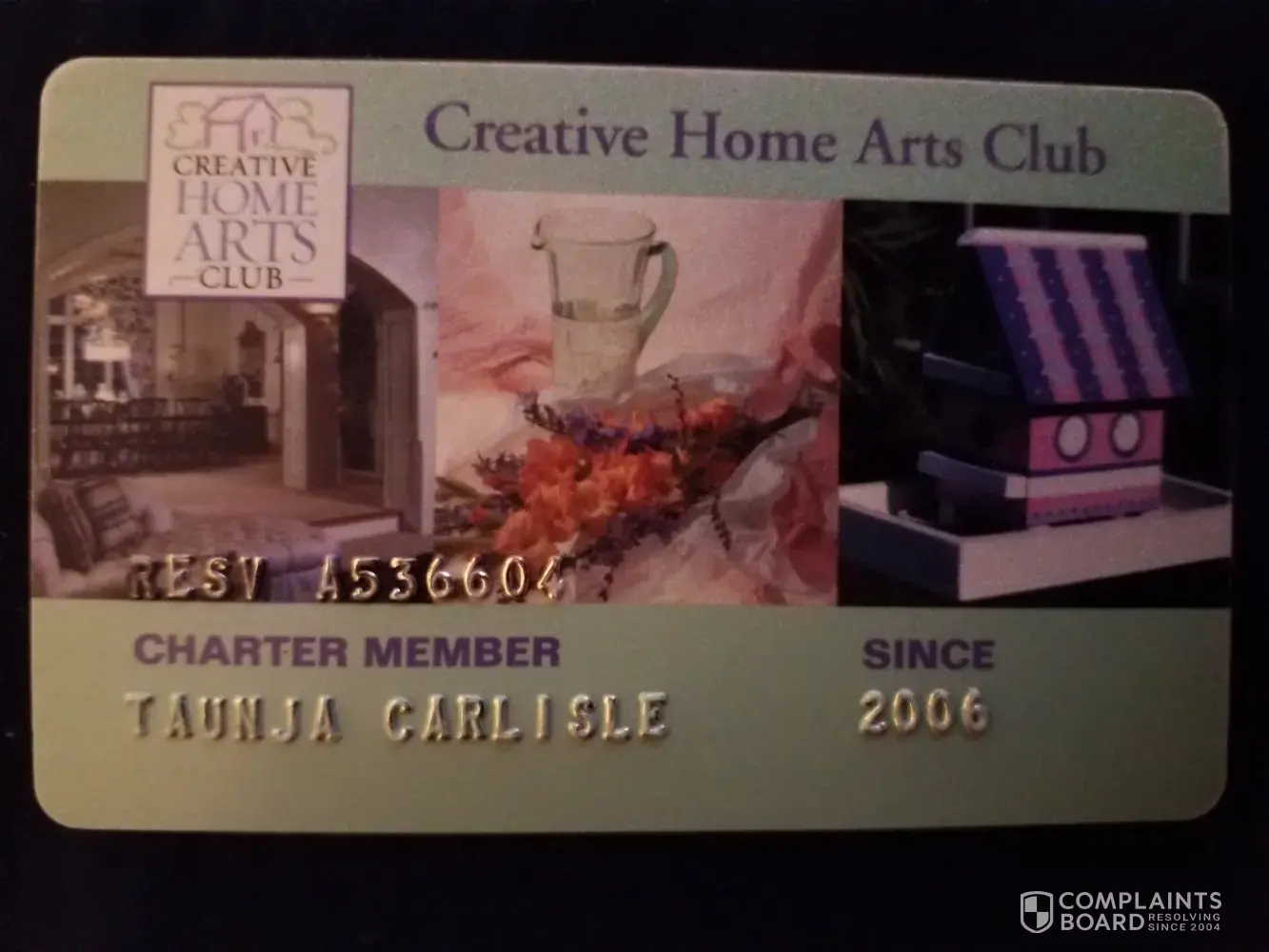 I purchased a Lifetime Membership in 2006 from Creative Home Arts Club. I recieved a few magazines and a few little art/craft kits and then nothing. Through life changes I no longer had time for crafting until I retired a month ago. I tried to look the company up and there is nothing. My email address has not changed since the last time I was on their website and I never received anything saying they were going out of business. My client number is RESVA536604, My name is Taunja Carlisle and I would like a complete 100% refund of the $365 I paid.