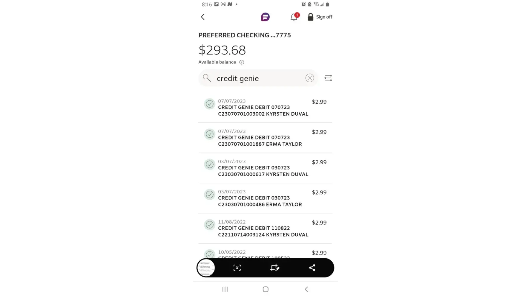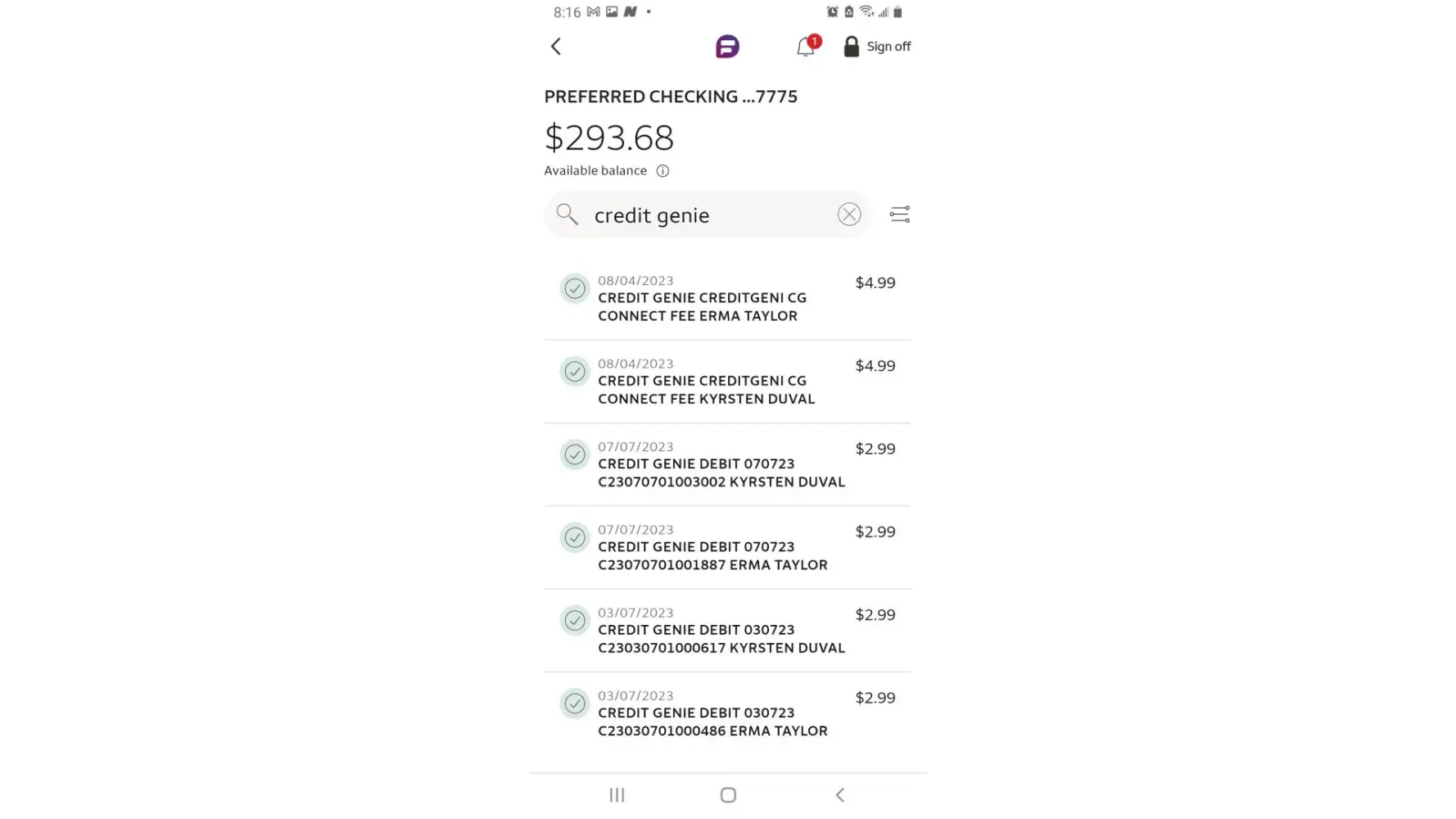 I did not sign up for this service. You have been taking money out of my account for over 6 months ..one with my name and one with a completely different person's name of Kyrsten Duval...