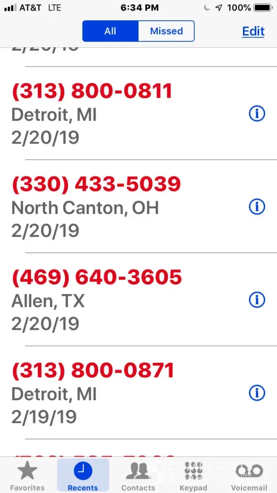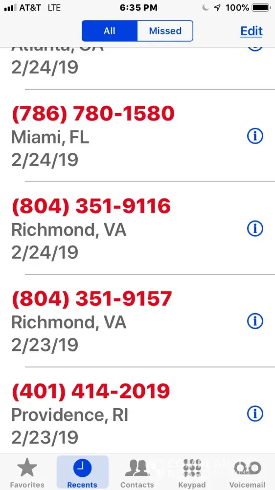 I am late on my credit card payment. The bank started robo calling me around the first part of feburary 2019. These calls were around 9 per day, sometimes in the late night/early morning. I ha had to change my phone number on march 1st 2019. I started savingthe calls on feb.15, I have screenshots of them attachment
