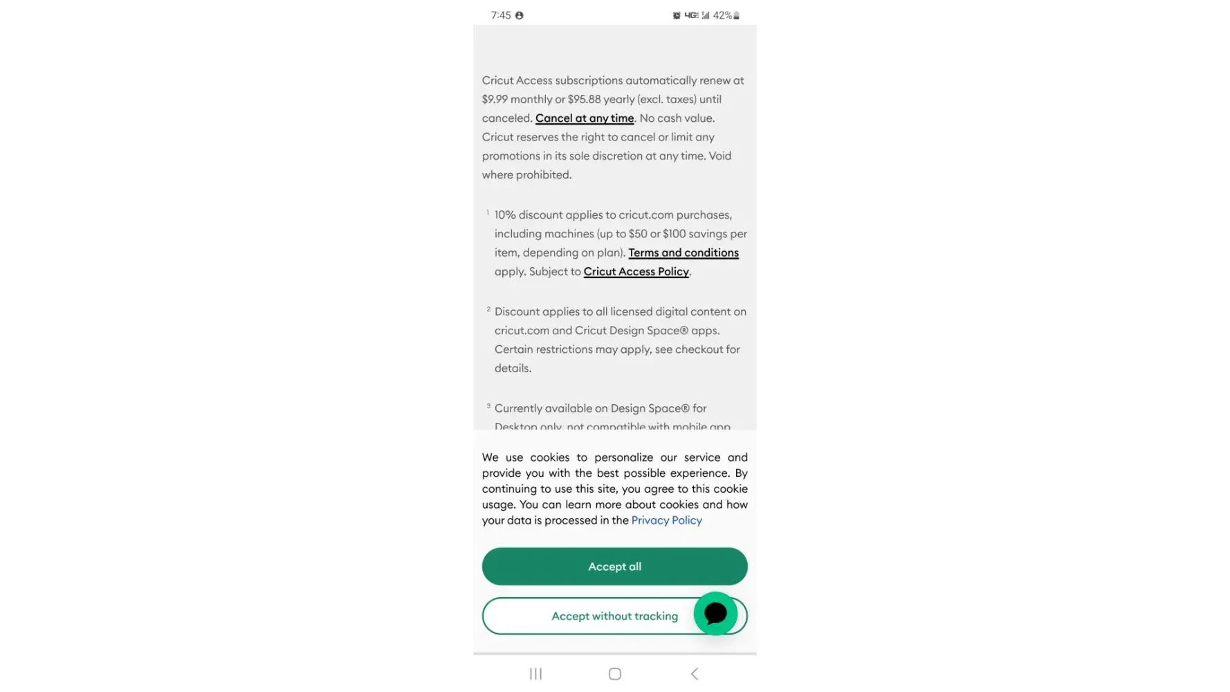 Spoke with Cricut customer service 11/03/22