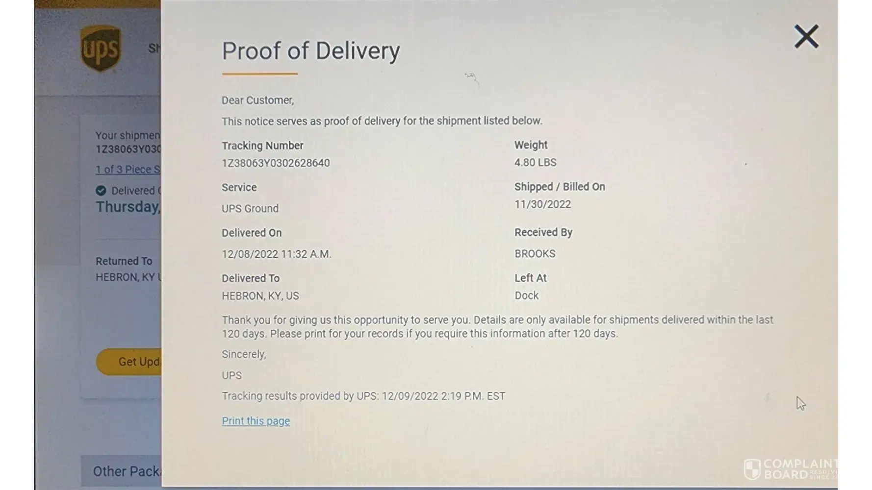 Verified customer This complaint was posted by a verified customer. Learn more