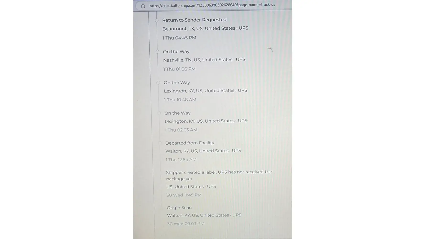 Cricut's outsourced Customer Service Dept leaves a lot to be desired. I have spoken with FIVE reps & all 5 have given me completely different stories. I have picture proof of the tracking and return information. I got an email earlier stating that I would receive a reship as soon as they can confirm the original package really made it back to them. Is the signature from UPS not good enough? This is a Christmas present that will more than likely be late. Thanks, Cricut. Thanks, a whole lot. Next step? Contacting my bank. I'd rather have my merchandise, but this has turned into such a hassle.