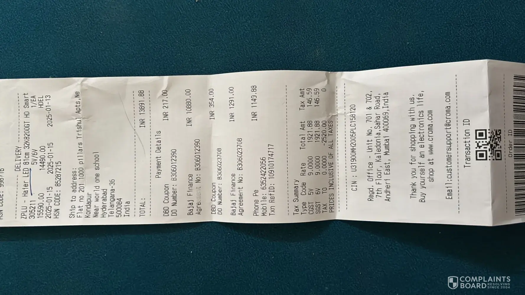 Croma Retail complaints: history and resolution overview