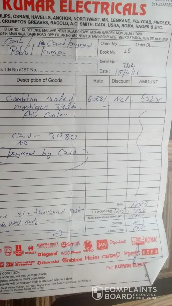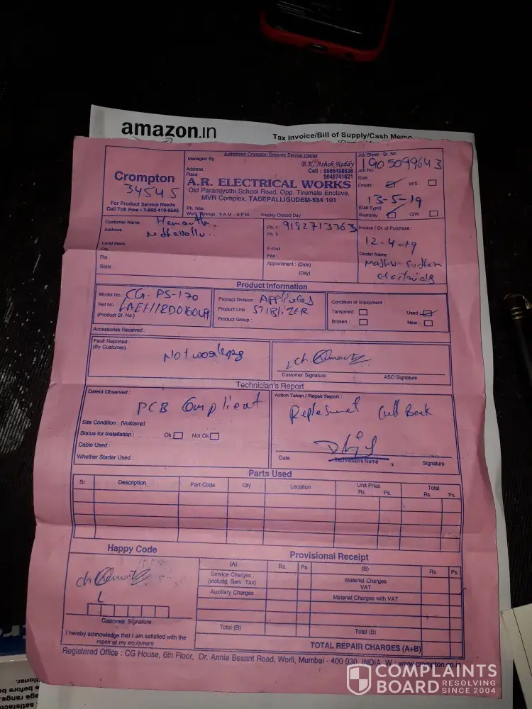 7 Crompton Greaves Consumer Electricals Complaints