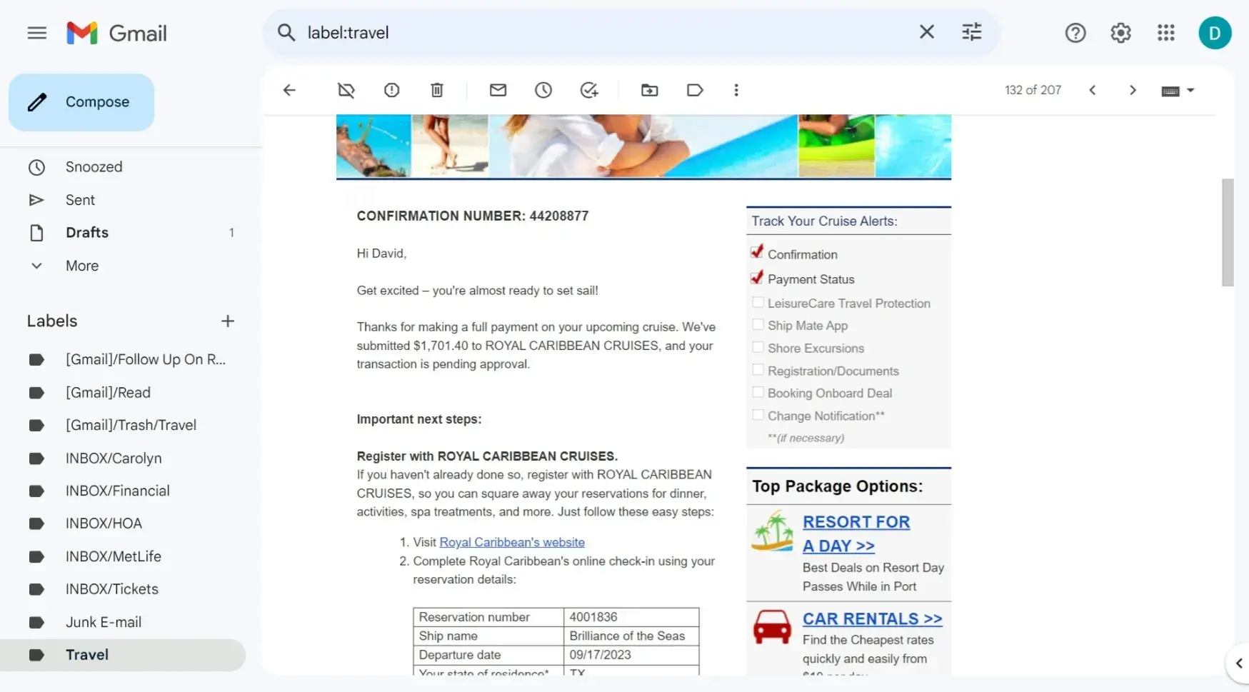 I tried doing the responsible thing and paying for insurance, plus a deposit, in good faith. But that was a cool $300-375 bucks down the drain. Now, I'm stuck in refund purgatory, waiting for Royal Caribbean to come through with what they promised. But guess what? Turns out they're trying to stiff me out of over $200! And I got the email receipts to prove it, too.