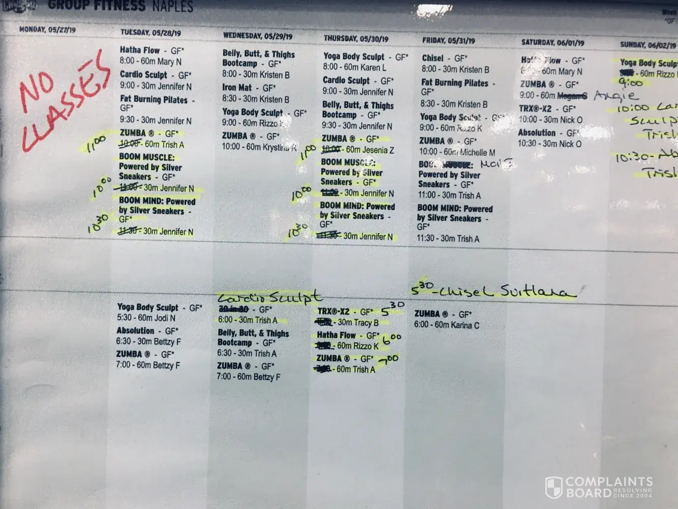 I love the Staff and Instructor at the Crunch in Naples Florida ! This is the third time the schedule was changed and I double check with the app or website any modifications of the schedule but it was not accurate. As a mother and work, for me the time to exercise is very limited and I program my schedule very precise. I went to the gym and again it was not classes and the same answer ! WE ARE SORRY ! I understand one time mistakes but this is the Third time