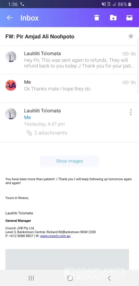 I went to Bankstown crunch gym and all i wanted to do is downgrade my membership however they ended up resigning me instead. They charged me $138.50 and I have been asking for my refund but the manager keep apologising and tells me samething over and over again. The money taken out of account on the 24th May 2019. Please look into this and I am also going to call fair trading tomorrow. Also please view the attached screenshots which shows how many emails I have sent to Bankstown crunch before submitting this complaint.