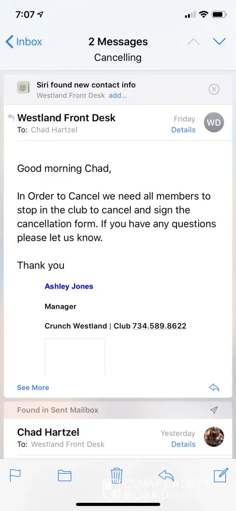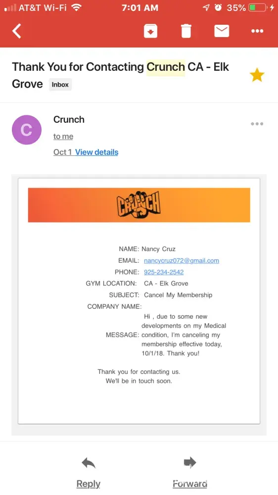 crunch terminated my membership