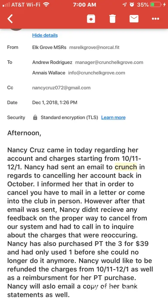 So I emailed the crunch San Dimas manager at the beginning of the summer because I was only going to be in CA for three months and didn't want to have to pay for a full year of membership. We emailed back and forth and he told me about the plan for college students where you pay for three months up front and then it automatically cancels after three months. I then went in and showed the email to the worker at the counter and they told me they signed me up for that plan. I then went to the gym and then just in case at the end of three months i emailed them to make sure I wouldn't be charged any additional money. I've since cleared my inboxes and can no longer locate the email. I've also realized that I've been charged for membership the past 3 months. I'm literally all the way across the states in Boston and haven't used my membership at all. The manager cancelled my never only after I complained and refused to refund the membership charges even though they were the ones who registered me for the wrong membership. I was very spedisci I wanted the one that ended after three months and showed the worker the email from the manager saying I wanted the three month upfront membership.