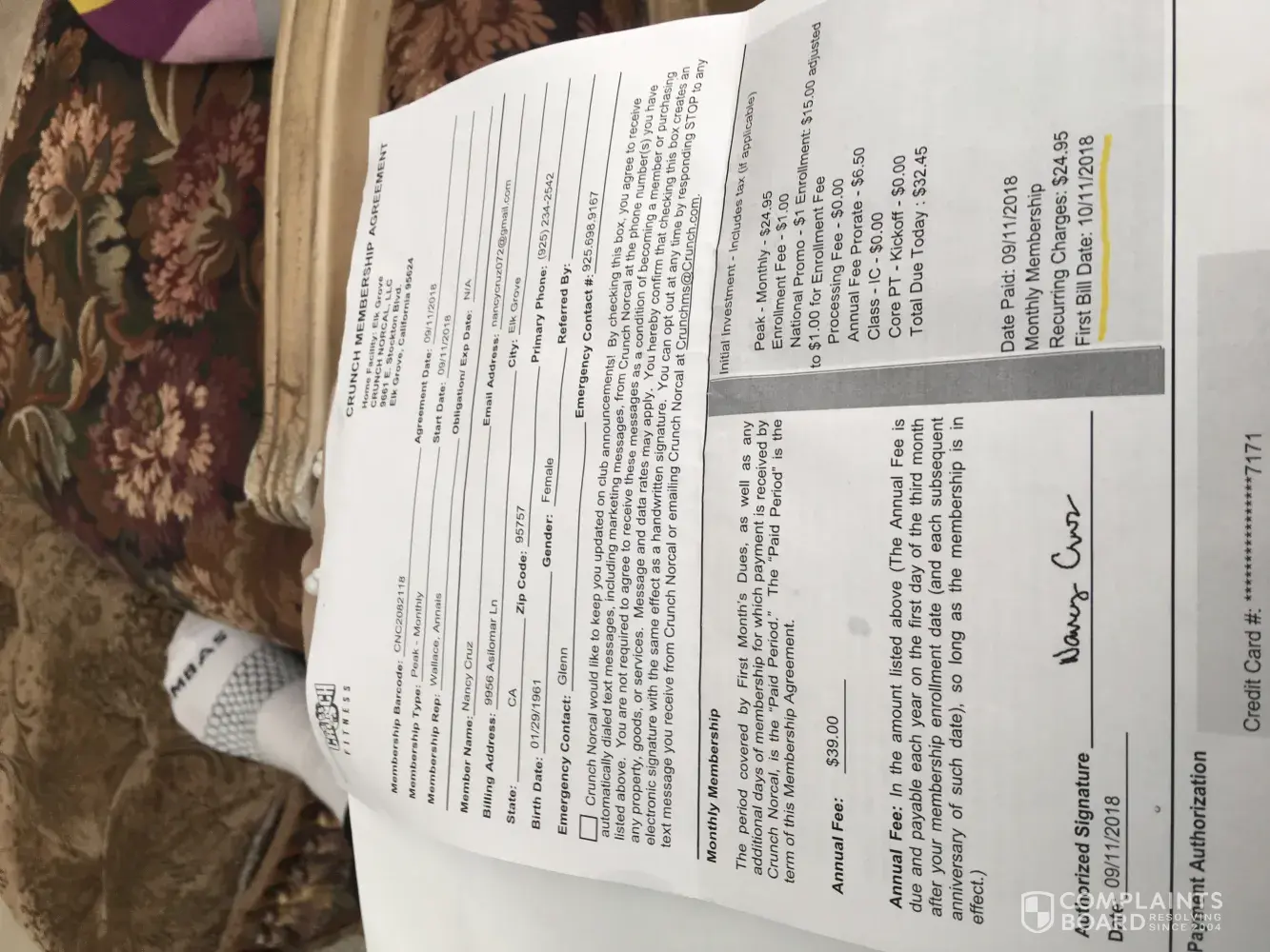 The reason as to why I am complaining is because I was told wrong information and another trainer filled out application for another trainer because she said she does not know how to it I was told I have 30 days to cancel my personal trainer and I have been trying to cancelling it and gym is telling me I can not I can sue this company for giving false information and for giving someone else the right to fill out another trainer application.