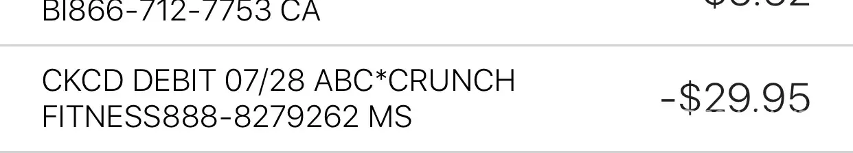 Then, when I checked my bank account this month I realized that the gym was billing me monthly, without my knowledge, or permission. I received no mail or email or billing notification of any sort, they've just been quietly draining the membership feee from my bank account and I only found out about it because they too a $66 fee this month that caused my account to overdraft and suffer $35 overdraft fee!
