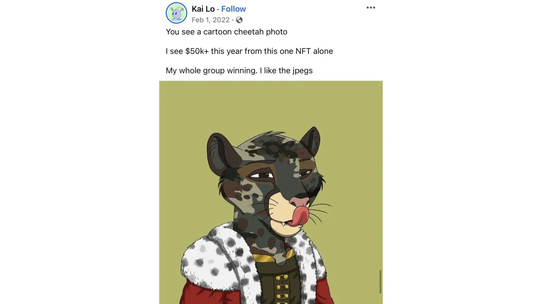 Kai Lo sold me an NFT in 2021. He told me that the value would 10x within 6 months. It has been over 2 years and the value of my NFT has dropped over 90%. I PAID OVER $10,000 in crypto to his platform. He does not return my calls & later I found out the company was a pump and dump. On March 23rd, 2021, I was approached on Facebook by Kai Lo to invest in a...