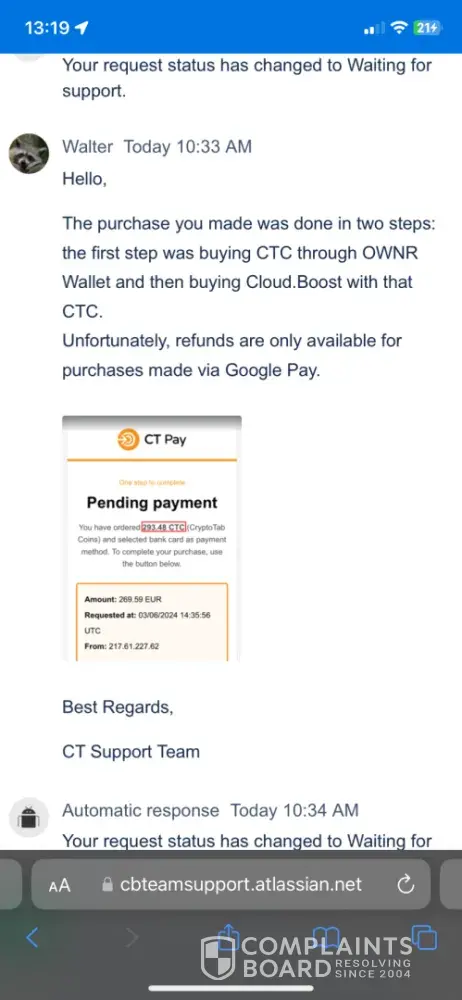 It’s a shame… frustrating is not the word! After spending 270e on the boost and couple hours going by and me not liking the purchase they take 2/3 days to answer and tell me, there is a refund but if you by o over x’amount of hours you can’t claim.. I told them is not been more then 6 hours and because i’m not happy with performance and gainings so I would like my money back and they can have the crypto mined! Well after two weeks of back and forward and making an account on a third party web of them so they can give me costumer service? That was even worst! So in the end if you don’t by thru them with google play they will never give you money back’bbb