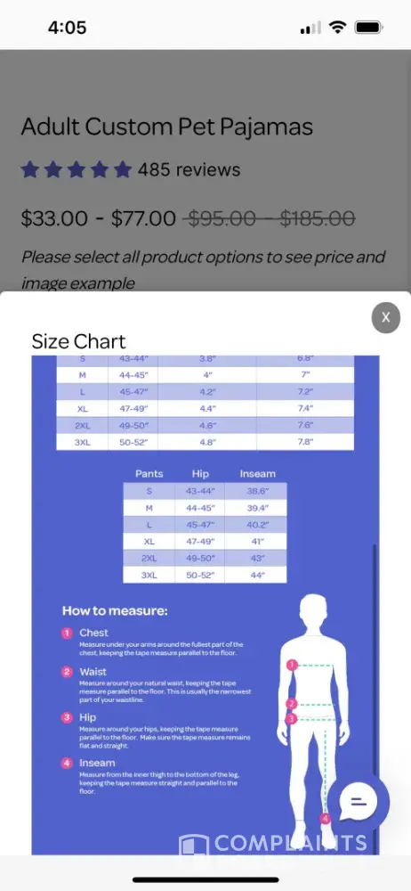 I placed an online order on 11/16. My items arrived 1-month later (approx. 12/16). They were (2) pairs of customized pajama pants for my kids. I used the size chart provided on the company website: www.cuddleclones.com. The sizes are extremely way off/way too small. Although I ordered correct sizes for an adult, what I received was more for toddlers. I am attempting to contact this company via phone, email and online submission directly through their website, however I am not receiving a response. AND, their phone lines have been "down" for 3+ days now. A voice message states that "due to technical difficulties, our phone lines are down and we can not receive incoming calls"... There is no way to leave a message and no one is responding to my online inquiries about a return/refund... Very poos business ethics and I believe they are not fraudulant...