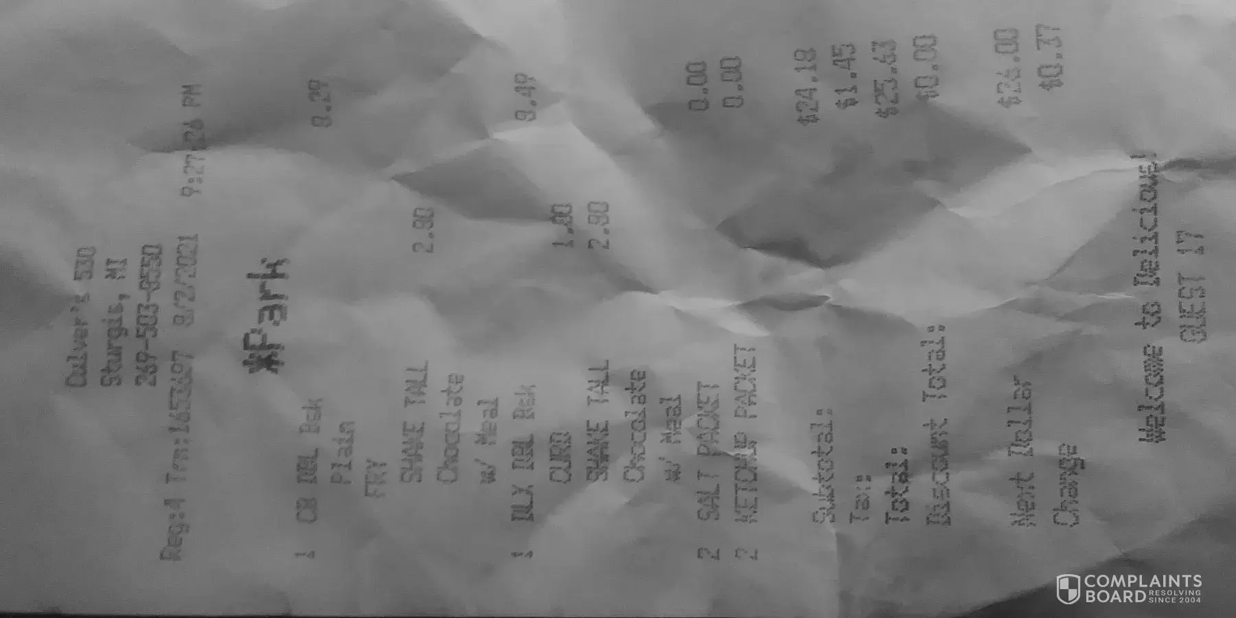 Desired outcome: Investigation as to quality of meal and service at this one location.