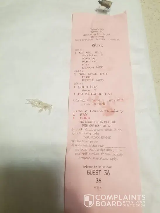 First Time Ever - I have a complaint for service at a Culver's location.