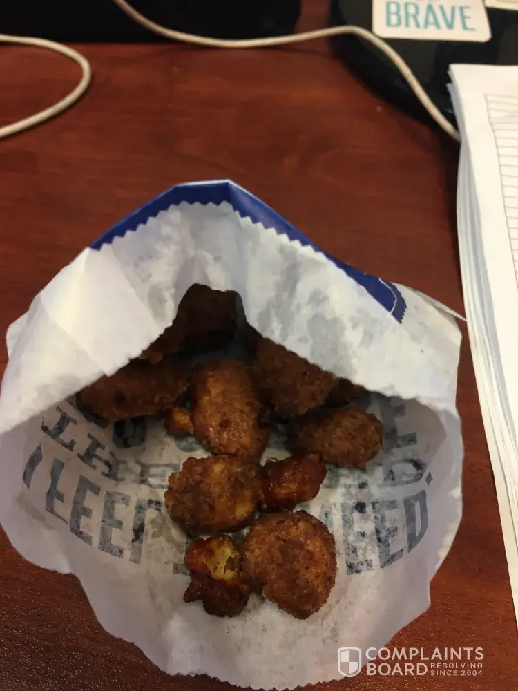Read full complaint2 burned burgers. Manager never apologized for poor quality food. I felt like she was calling me a liar about the food