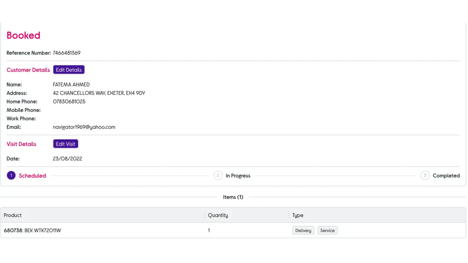I eventually managed to contact them by telephone on Monday 5th to complain about the date changes and asking if I could have an earlier delivery as I have been coping without a washing machine for over a week. The earliest she said they could offer was Saturday 10th September... I then asked to keep the Thursday 8th delivery as previously confirmed, only to be told it was not available... They had no record of the delivery for Thursday 8th!