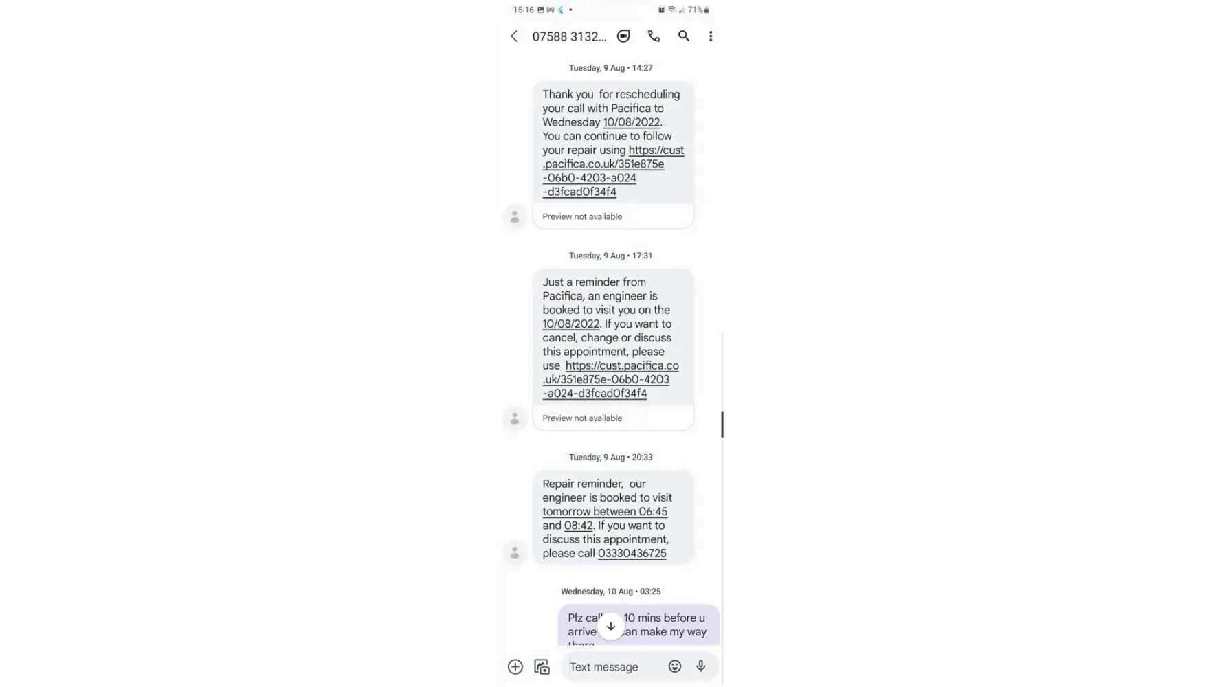 I never received a text or call nothing so called tonight 19-08-22 to be told that the job card needed an engineer to attend, I heard nothing from Currys at all.