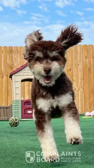 Just thought I would give you an update on the wonderful Aussiedoodle we got from you. His name is now Charlie but it was Alvin DOB 4/8/2021. Thank you so much for allowing us to adopt him he has been a pure blessing to our family. See attached pic of him having fun at doggie daycare.