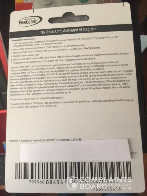 play station store coupon of 50 $ to redeem was not activated by the cashier