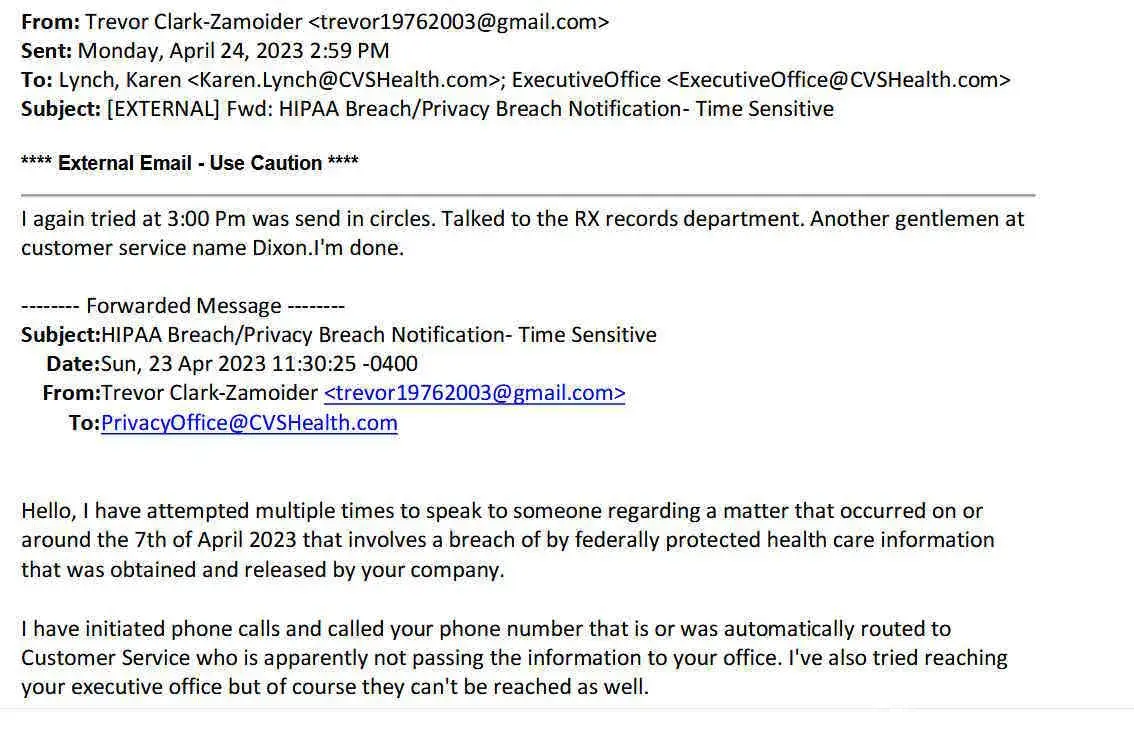 On or around 4/7/23 CVS handed over 15 pages of protected healthcare information of mine to a 3rd party with a fraudulent release. LET ME REPEAT THAT I NEVER SIGNED ANY RELEASE FOR MY RECORDS CVS. The third party in an email later provided to CVS admitted and listed CVS as one of many who did provide them with information with the "release". I have...