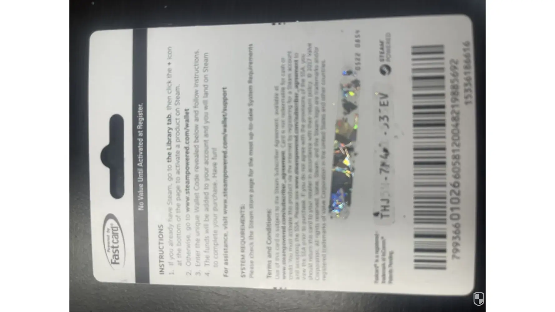 Defective steam gift card