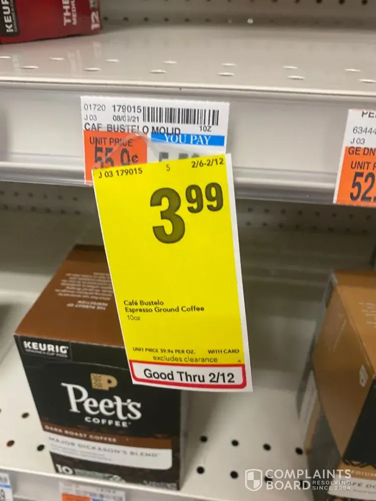 I went to CVS on Washington Ave to get a few things I always go there when I run out of things at home its closer to my home since I live on 5th street /Marin Blvd I went through the coffee line I saw coffee that was on sale maxwell house for 4;99 and Bustelo for 3.99 I saw there was 2 boxes left I decide to buy the Bustelo coffee upon going to the register...