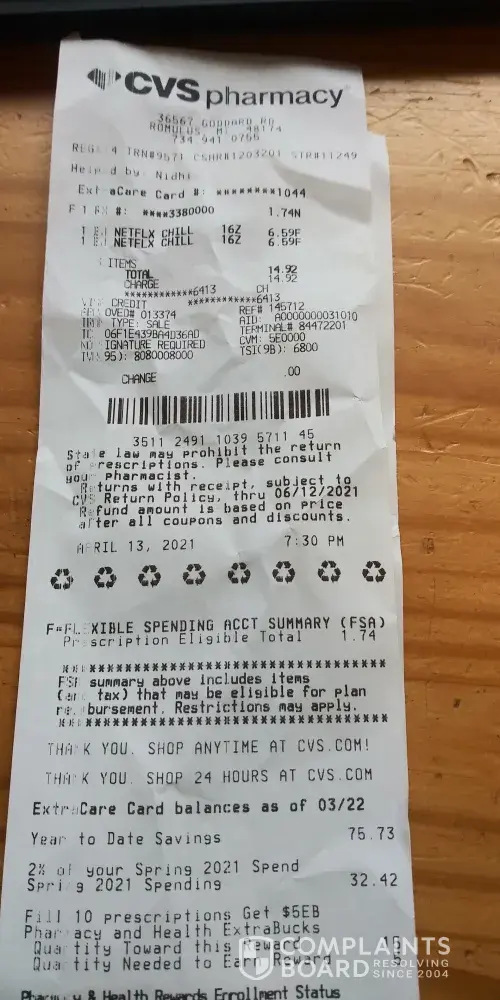 I bought products at CVS Store on El Camino Resl. I was at the end register nearest he door after 1:30 PM and the Man behind the counter ask for my Card Number, which is my phone number 650 573-8277z. The charge was. $ 10.12 and I used my $10.00 monthly cvs charge and he asked for $0.11 which I paid in cash. This was on Friday, 4/16/21. Now I get A charge...
