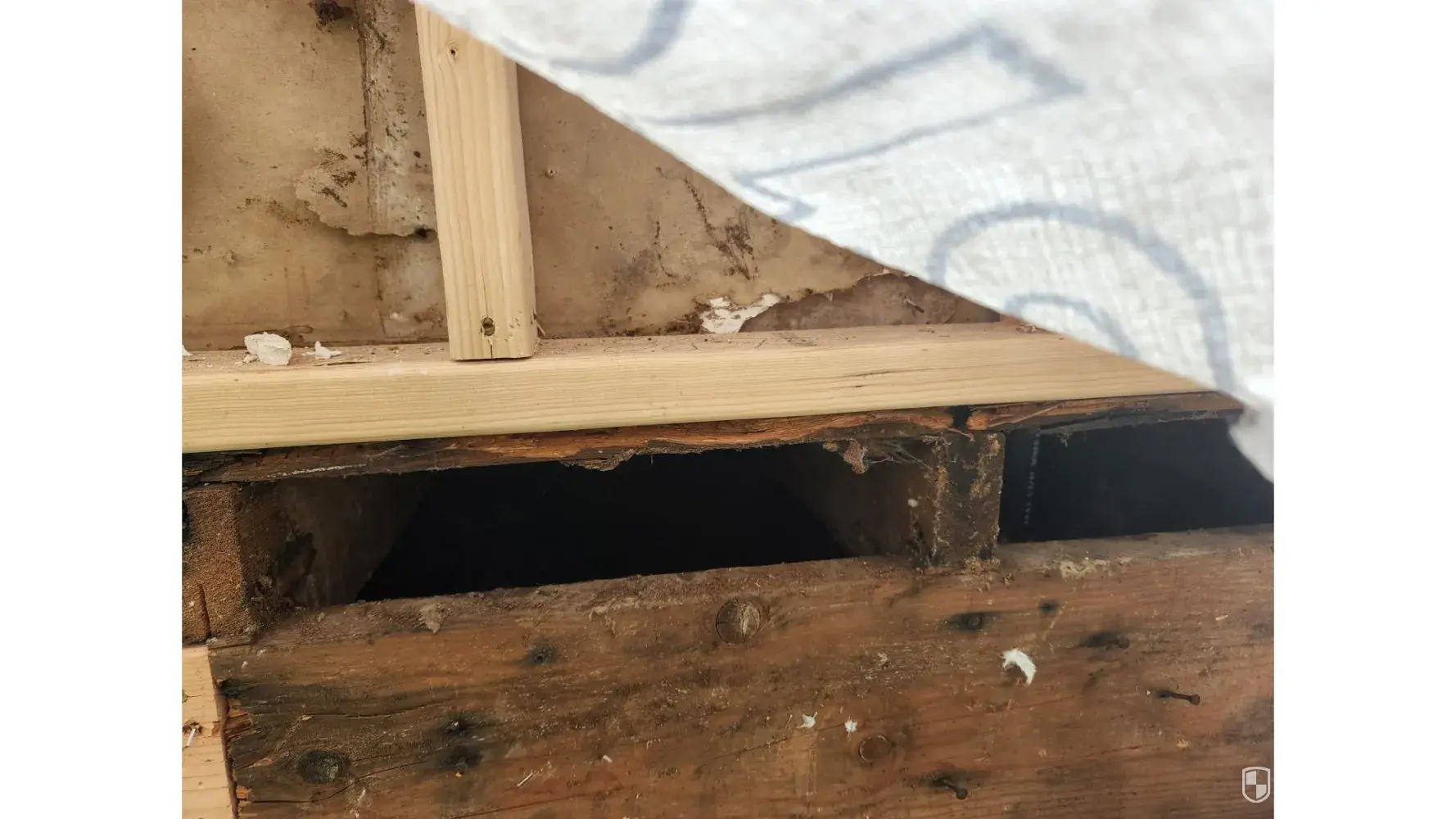 However, I don't believe there is any plywood under the back side, as it is sagging in the same places as prior to the repair. When it rained the first time after repairs, there are two large leaks in the room with skylights.