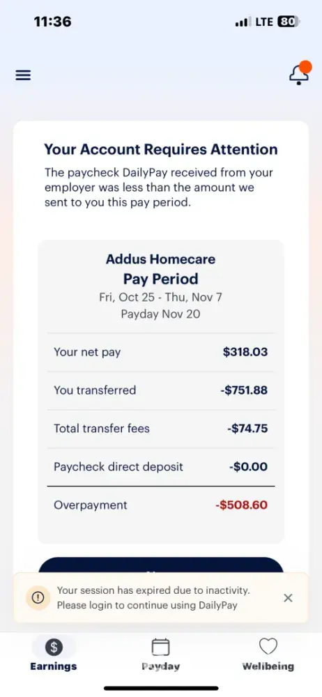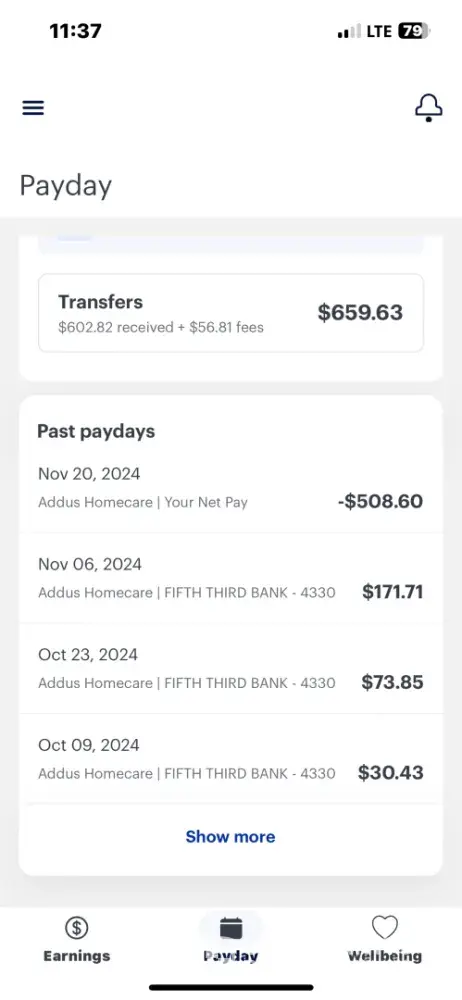 So now, in addition to them not recognizing when my employer reports that I’ve worked FIVE 11 pm - 7 am shifts through the week on the EXACT SAME SCHEDULE EVERY WEEK, I’m delayed by two days getting the rest of my pay, which now puts me in worse financial shape than I was in before I did business with them.