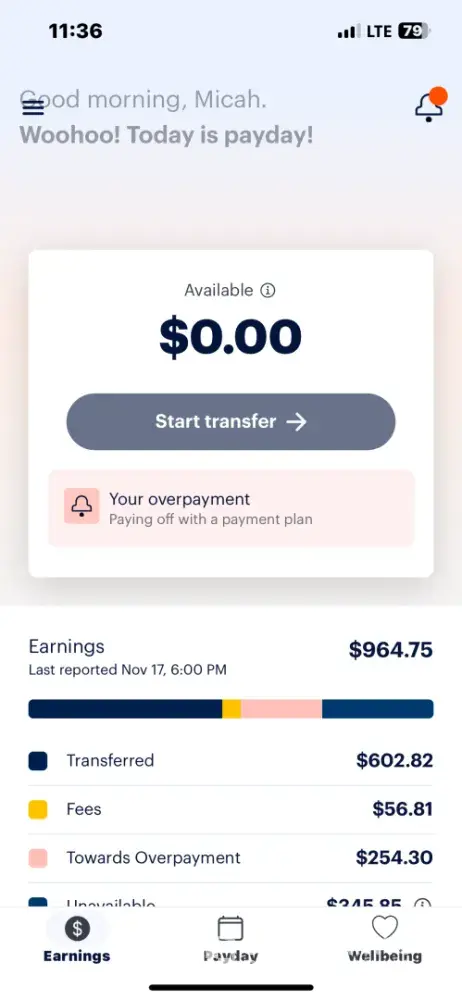 So according to the agent I talked too they overpaid approximately 500 people two weeks ago. This also conveniently happened on the same week I was supposed to be receiving my yearly bonus vacation pay so I was “expecting†extra money and was not surprised when I had extra money deposited into my account. A week later they took one of the 661 dollar payments back from me. I called and had the issue “investigated†(which it wasn’t) I was supposed to receive an email explaining what happened. So this week when I received only an 18 dollar paycheck I called to see what happened(keep in mind I had no idea this was connected to the “overpayment†which had happened the previous week like I said no one emailed me). So somehow I was paid like 1100 dollars but they are claiming they also overpaid me by 1300 dollars. Was I supposed to receive a negative paycheck? The agent just kept going back to like every transfer I had made the previous weeks which should’ve already been taking out of those weeks that I had worked but apparently I guess they weren’t? Anyways who knows I was so frustrated at the end of the call I just hung up. The lady on the phone was nice even though I was furious and still am if anyone is reading. If you’re an accountant or just really good with math then I guess this service can be ok for you. But even then like the title of this post good luck if you ever have an issue and be prepared for them to overpay you and then take money from you without ever notifying you.