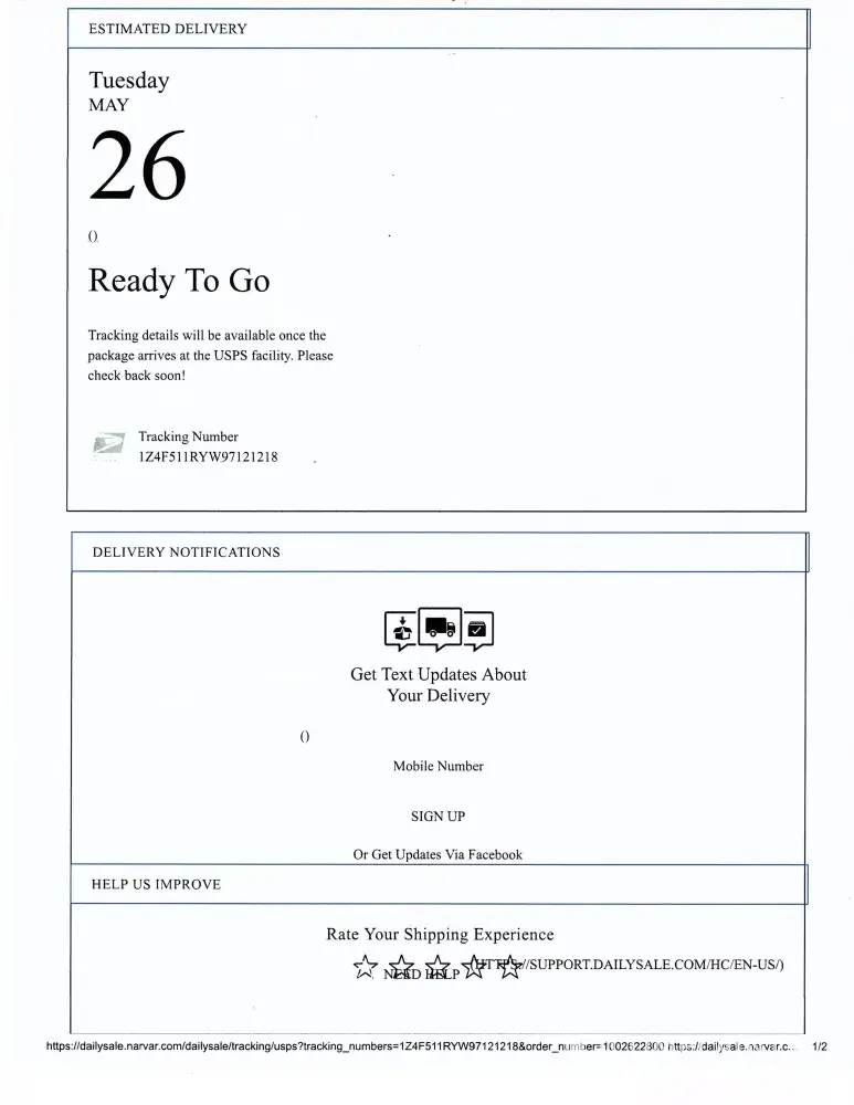 This is the worst place ever to order from. I will let me Facebook friends know not to get Involved with dailysale.com. I will never order again from dailysale.com. first of all you have to email them because they are to cheap to have a phone and a live person to talk to you they want you to email them. Even then it doesn't help. They take your money and dont give you a tracking number. You have no way of knowing where you package is or if you will get it. Their site locked me out after I ordered. My name is sheila James I ordered a smart watch, track it for me please and send me the tracking numbers. Thank you.