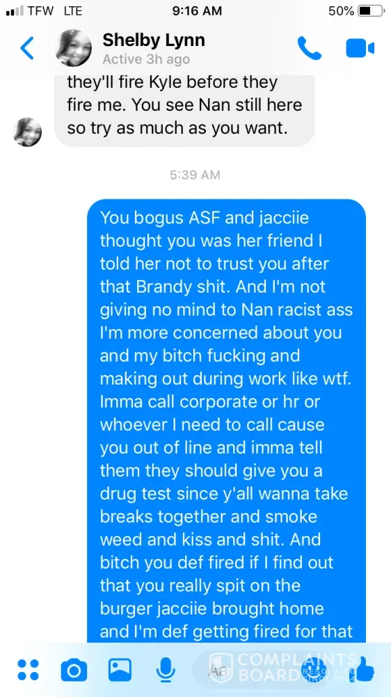 An employee was having an affair at work with my girlfriend who was also an employee and once I confronted both of them later I was told by my girlfriend that she hoped I enjoyed my spit burger. I then confronted her Co worker/lover or whatever via messenger and she admitted everything. I contacted the boss and the unsanitary act was disregarded and he said...