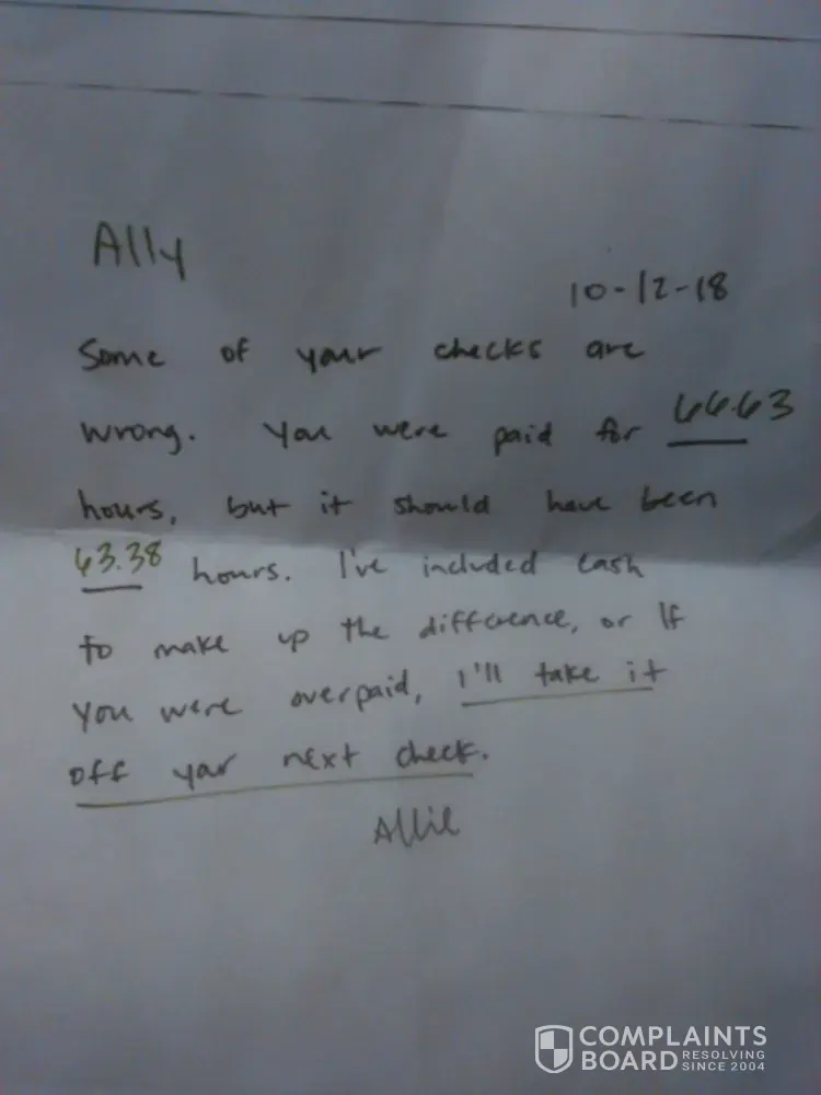 I was employed by this dairy queen franchise. The owner Allie Waller is paying her employee's with cash to avoid taxes. She claims that every employee has been either overpaid or underpaid, leaves out hours every pay period and when brought to her attention nothing is done about it. She is not running a safe environment for the staff. Sexual misconduct in the work place with several employees and one female manager. The manager is 25 and preys on the vulnerable teenagers who work there. Food is kept at the wrong temperatures. Copper wires are exposed on the cone dip warmer. The time clock is always off. I worked there for several months and only saw her three times including my interview. Sexual Harrassment has been reported and ignored. Children 16 and 17 are working in an unsafe and unhealthy environment. Something needs to be done about this location immediately. I quit this location 2 weeks ago. I could not tolerate or ignore the escalating amount of wrongdoings any longer. I am not a disgruntled employee. I am a mother and a 36 year old woman in the workforce in middle Tennessee. I am a concerned member of this community and town. Please take seriously.