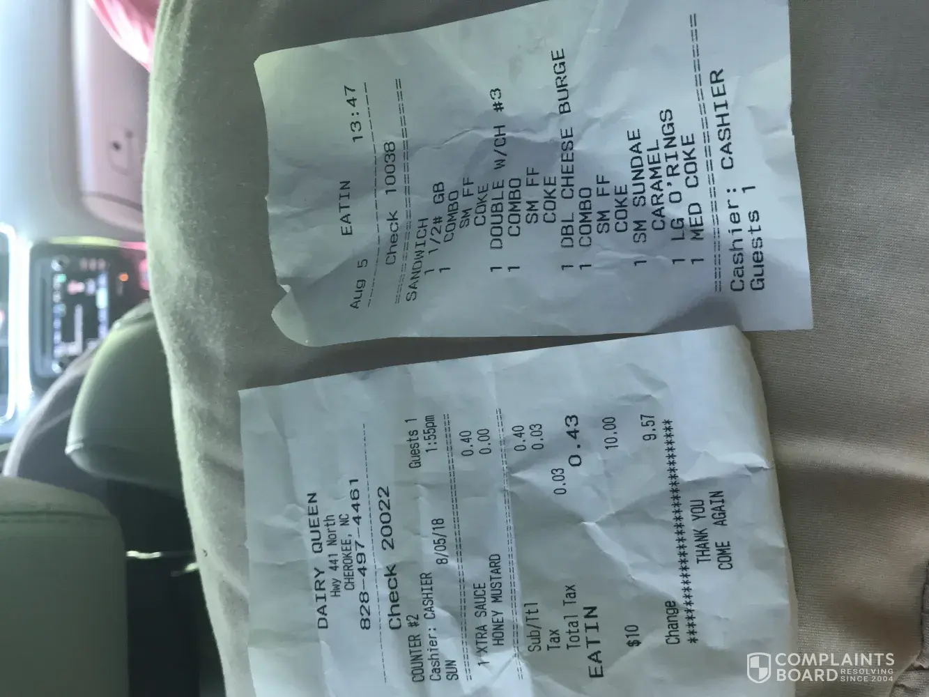 I wish I could download a photo of the hamburgers I have received from this location in the pass 5 years I have wrote serval reviews on DQ. The last time I went there they charged my card 12.36 for double cheese burger meal. Told them it was wrong they gave me my money back in cash then charged my card again 5.46. Well today I got ordered the same meal and it came cold again and with some much mustard it was like a dirty dipper mustard everywhere am tired of this service I sure wish they open another restaurant in town where we work.