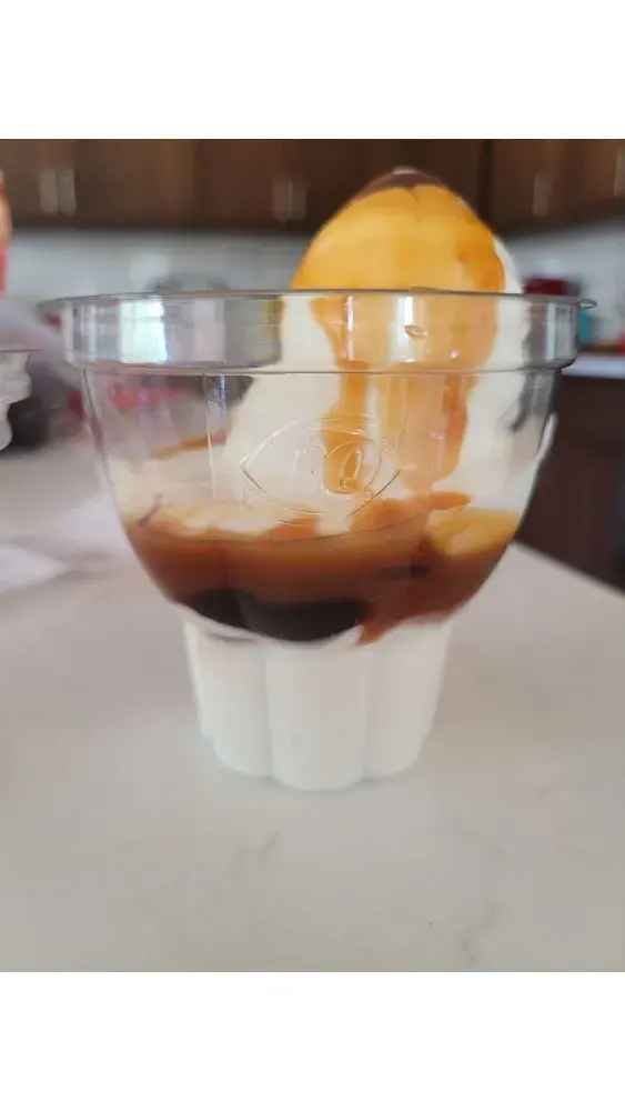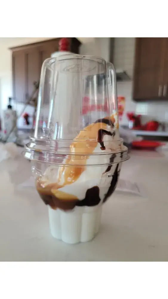 I ordered 2 large hot fudge sundaes, at Carmel topping and got the smallest sundae I've ever seen. Smaller then your normal small. I questioned the size they told me it was because it was melted. There was maybe a tablespoon of each topping.